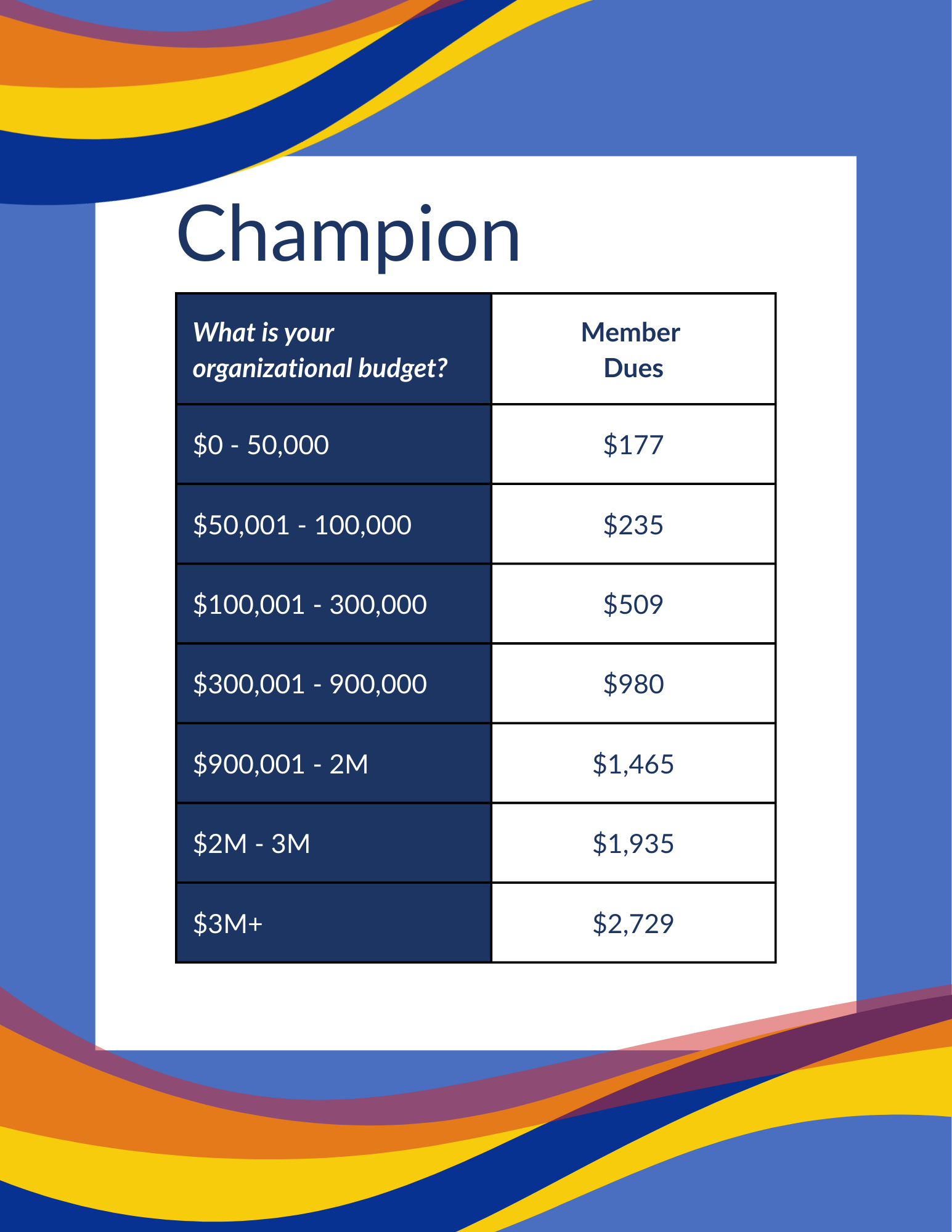- Champion members are also invited to quarterly calls with CCAoA Leadership, where we discuss child care advocacy, research and strategy.